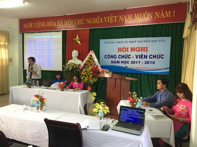 Thực hiện nhiệm vụ năm học, sáng ngày 28/9/2017, Trường THCS & THPT Nguyễn Khuyến đã long trọng tổ chức Hội nghị Cán bộ, công chức, viên chức và người lao động năm học 2017 – 2018.