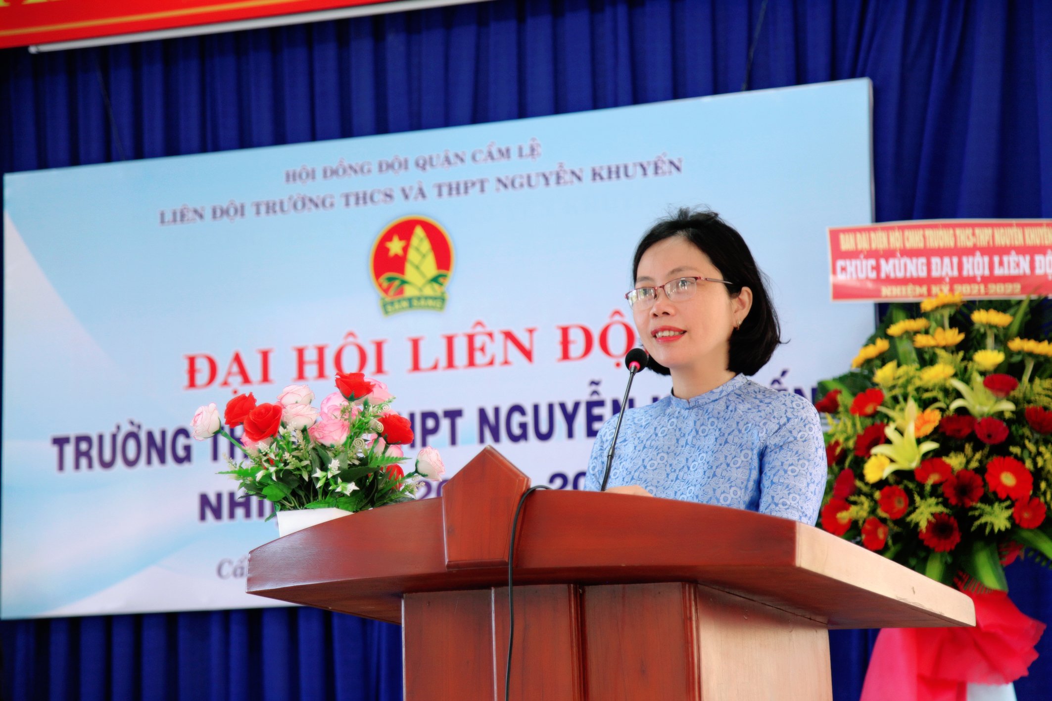 Phát biểu tại Đại hội cô giáo Trần Thị Kim Vân – Bí thư Chi bộ, Hiệu trưởng nhà trường đã đánh giá cao những kết quả mà Liên đội Nguyễn Khuyễn đã đạt được trong năm học 2020 – 2021. Cô hy vọng rằng, với tinh thần trách nhiệm và sự nhiệt tình năng nổ của Ban chỉ huy Liên đội mới, trong năm học này Liên đội Nguyễn Khuyến sẽ tiếp tục giữ vững danh hiệu “Liên đội xuất sắc” cấp Quận và Thành phố .