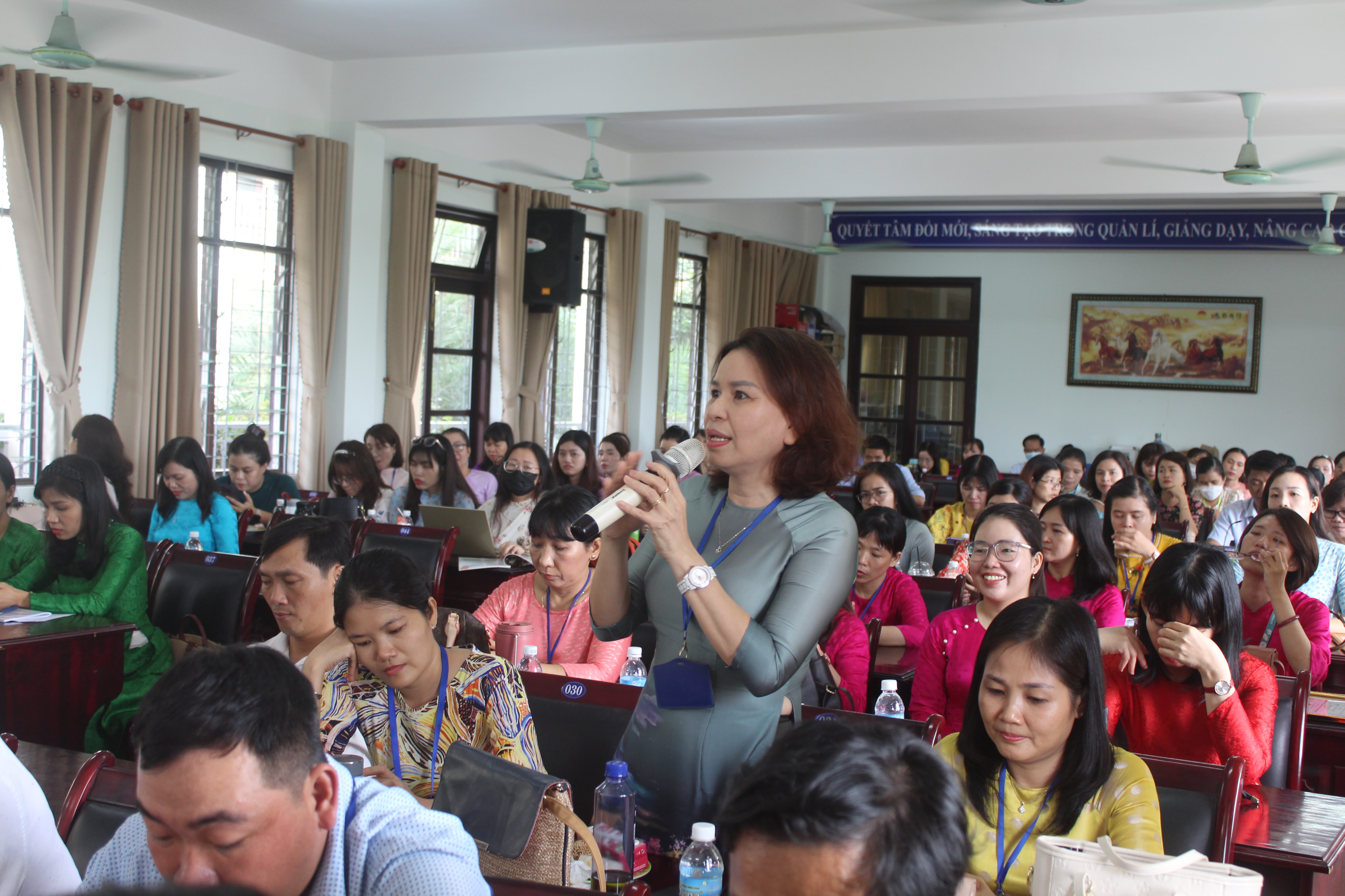 Cô Trần Thị Kim Vân – Hiệu trưởng giải trình các ý kiến tại Hội nghị