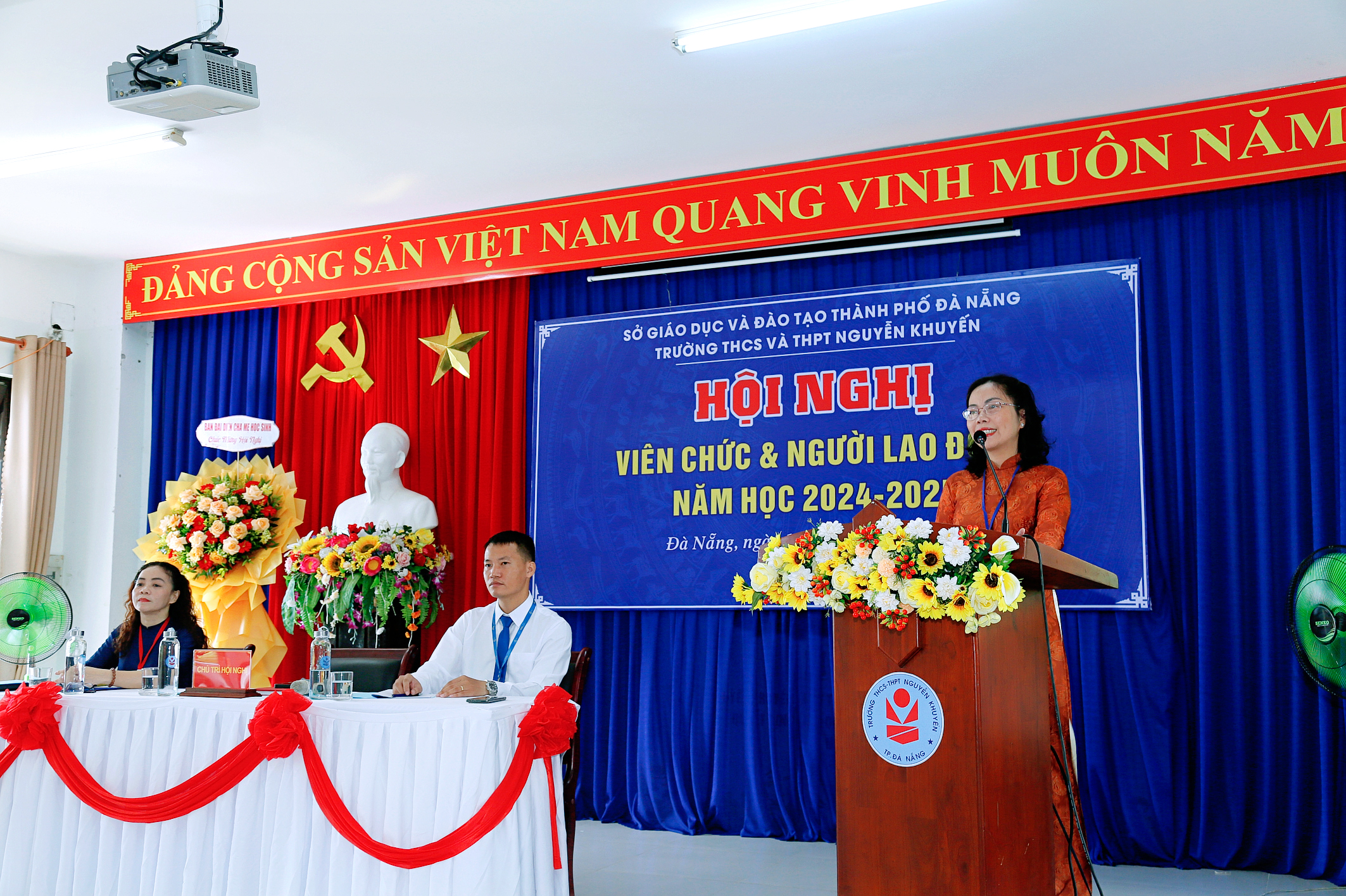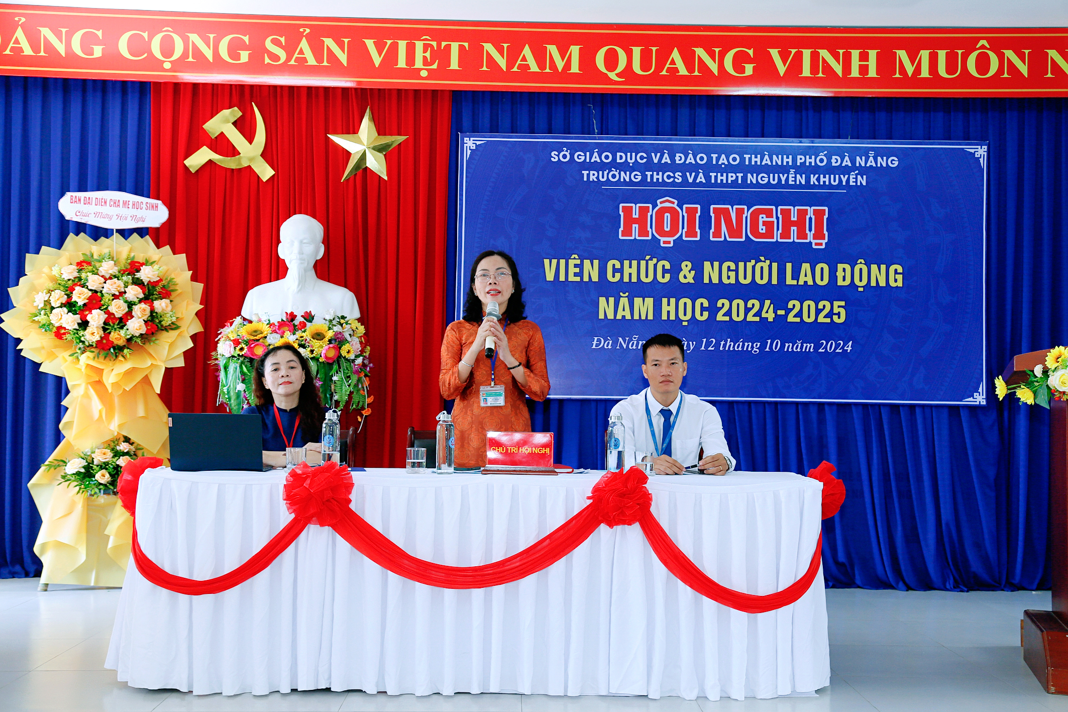Ngày 12 tháng 10 năm 2024 vừa qua, Trường THCS & THPT Nguyễn Khuyến tổ chức Hội nghị Viên chức-Người lao động năm học 2024-2025. Về dự với Hội nghị có Ông Trần Nguyễn Minh Thành, Phó Giám đốc Sở Giáo dục và Đào tạo – Chủ tịch Công đoàn ngành Giáo dục; Ông Nguyễn Quốc Khánh, Trưởng ban đại diện CMHS nhà trường cùng toàn thể giáo viên, nhân viên nhà trường cũng có mặt đông đủ. Sau một buổi sáng làm việc khẩn trương, nghiêm túc; Hội nghị đã đánh giá việc thực hiện các nhiệm vụ trọng tâm trong năm học 2023-2024, đồng thời đề ra các nhiệm vụ, giải pháp và chỉ tiêu năm học 2024-2025.