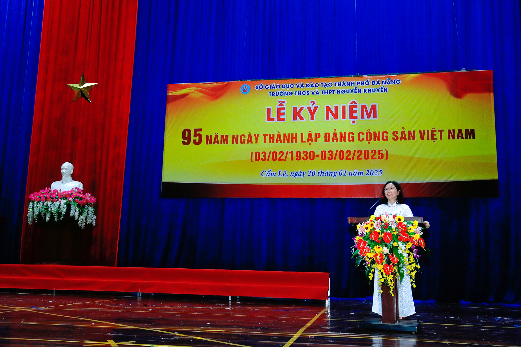Tại lễ kỉ niệm, đồng chí Trần Thị Kim Vân, Bí thư Chi bộ, Hiệu Trưởng nhà trường đã thay mặt Chi bộ ôn lại lịch sử hào hùng của Đảng ta. Cách đây 95 năm, ngày 03/02/1930, Đảng Cộng sản Việt Nam được thành lập, đánh dấu bước ngoặt vô cùng quan trọng trong lịch sử cách mạng nước ta. Sự ra đời của Đảng đã đáp ứng yêu cầu phát triển của cách mạng nước ta và xu thế của thời đại. Đảng ta ra đời đã chấm dứt thời kỳ bế tắc, khủng hoảng về đường lối cứu nước trong hơn hai phần ba thế kỷ, kể từ khi nước ta bị đế quốc xâm lược. Từ đây, cách mạng nước ta có đường lối đúng đắn. Đảng Cộng sản Việt Nam thực sự trở thành người lãnh đạo và tổ chức mọi thắng lợi của cách mạng Việt Nam.