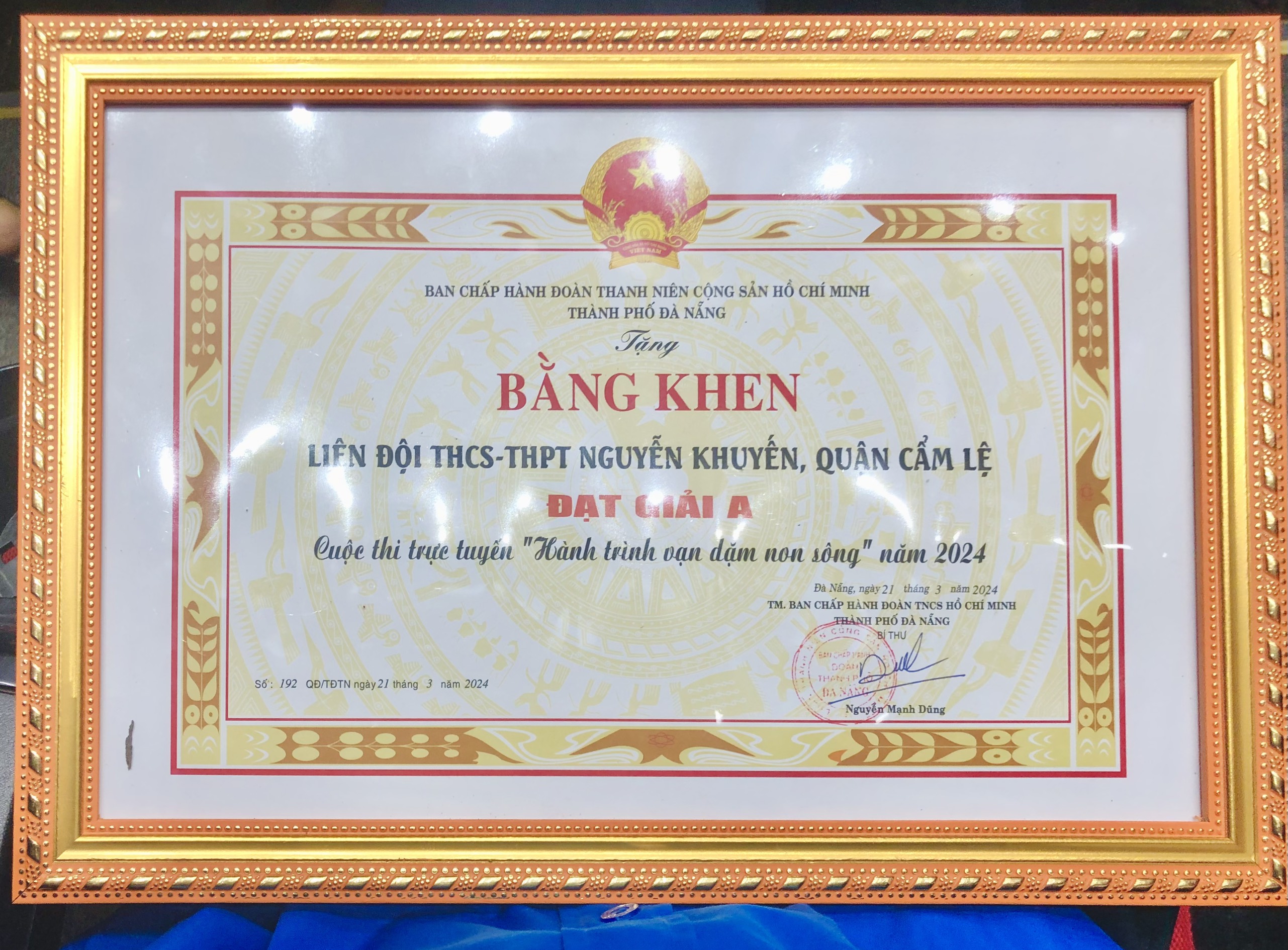 Vượt qua rất nhiều các tác phẩm dự thi đến từ các Liên đội trên toàn thành phố Đà Nẵng, Liên đội Trường THCS&THPT Nguyễn Khuyến đã vinh dự được Ban Chấp hành Đoàn TNCS Hồ Chí Minh thành phố Đà Nẵng trao tặng Bằng khen vì đã đạt được giải A trong cuộc thi này.
