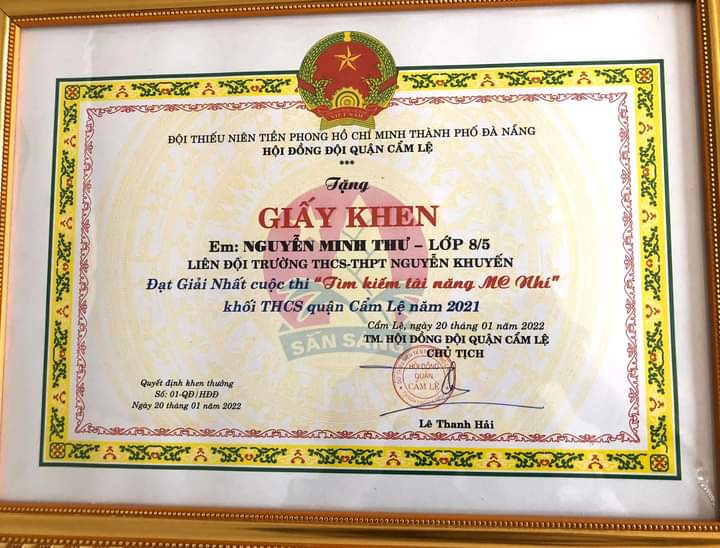 – Giải Nhất cuộc thi “Tìm kiếm tài năng MC nhí” khối THCS Quận Cẩm Lệ năm 2021.