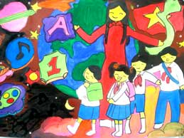 “Niềm vui ngày đến trường” của Yến Minh lớp 9/2 đã tạo nên một không khí mới , một niềm vui mới khi mỗi sáng mai em được đến lớp có biết bao điều mới lạ giúp em tích cực và thân thiện hơn trong cuộc sống xung quanh biết mấy vấn đề lôi kéo trẻ thơ. đến trường không những có những niềm vui bè bạn mà niềm vui lớn lao nhất đó là gặp được cô giáo mới, với tác phẩm “Mừng cô giáo mới” của Uyên Thi lớp 6/4 Một cảm xúc tràn đầy khi em được bước vào một ngôi trường mới hoàn toàn mới lạ mà đặc biệt là ngôi trường Nguyễn Khuyến, ngôi trường mà biết bao học sinh tiểu học từng mơ ước. cùng đi với năm tháng Bích Trâm lớp 8/4 đã thể bức tranh của mình với nội dung tác phẩm “Thầy một ngôi sao sáng”. Với những tác phẩm đầy tâm huyết của học sinh trường Nguyễn Khuyến qua cuộc thi chào mừng ngày nhà giáo Việt nam 20/11/2008 đã gửi đến quý thầy cô một lời chúc chân thành dồi dào mà không có ngôn từ nào tả hết.