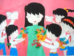 Nhân kỷ niệm 26 năm ngày Nhà Giáo Việt Nam 20/11/2008 học sinh trường Nguyễn Khuyến TP.Đà Nẵng đã tích cực tham gia các hoạt động sôi nổi trong đó có hoạt động về cuộc thi vẽ tranh .Với những suy nghĩ và việc làm của mình học sinh của trường đã thể hiện được tâm tư tình cảm qua từng tác phẩm . Nguyễn Quỳnh Tiên lớp 7/4 đã thổi một luồn gió mới vào tranh của mình bằng những tình cảm chân thành nhất, đầy xúc động với tác phẩm “vượt lũ đến trường”. Thời gian qua đi, biết bao thăng trầm của cuộc sống ngày thường, bao nỗi âu lo quanh quẩn bên những người thầy, người cô, song họ cũng miệt mài với từng trang giáo án nhỏ để ngày mai giúp em vào đời, tác phẩm “cô giáo của em” của Huyền Tôn Nữ Ngọc Trâm lớp 9/5 đã ghi nhận điều ấy, khi tóc cô đã chuyển màu. “Niềm vui đến trường” của Hoàng Ngân lớp 8/1 không nằm ngoài những suy nghĩ ấy song với cách thể hiện màu sắc qua nét vẽ cũng gửi gắm một tình cảm trong sáng của mình đến với quý thầy, quý cô. Bích Ngọc lớp 9/2 bằng nguồn cảm xúc của mình thể hiện qua bức tranh bằng nội dung “ Cô giáo tôi nằm viện”. Dù nằm trên giường bệnh song cô cũng không khỏi suy nghĩ về học sinh của mình với nhiều điều cần phải suy ngẫm đôi mắt cô mở to tròn long lanh nhìn về xa xăm với một ngày mai tươi sáng hơn, bên chú gấu nhỏ là học sinh thân yêu của mình đã giúp cô tự tin hơn vượt qua cơn bạo bệnh. Cô giáo như mẹ hiền nhiều học sinh muốn giành nhiều điểm mười hơn nữa để làm lòng cô và mẹ vui lòng với tác phẩm “ Cô và em” của Phương Uyên lớp 8/2.