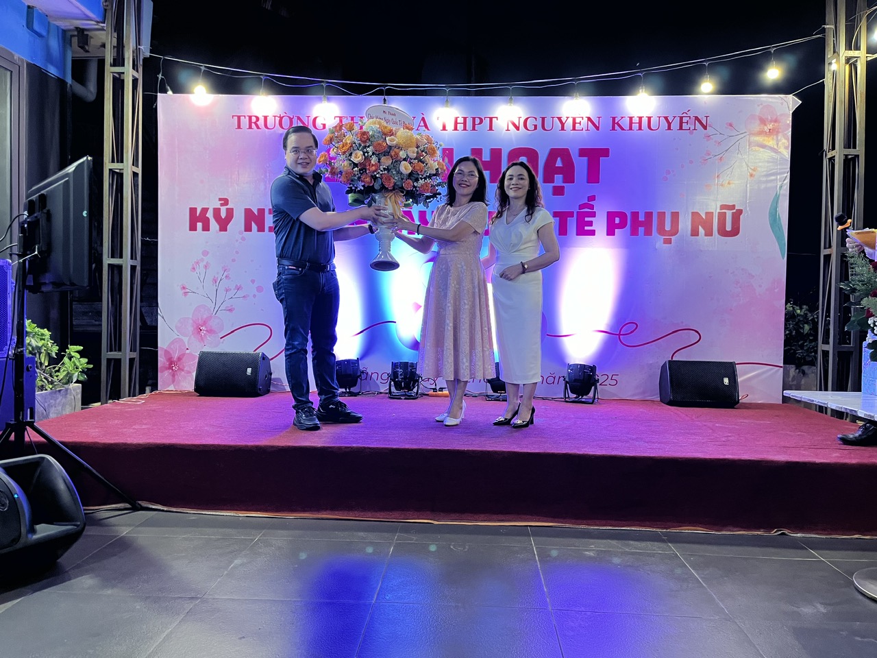 Đến dự và chung vui với Công đoàn nhà trường, thầy Trần Nguyễn Minh Thành – Phó Giám đốc Sở Giáo dục và Đào tạo thành phố – Chủ tịch Công đoàn Ngành Giáo dục; Cô Phan Thị Thục Anh – Phó Chủ tịch Công đoàn Ngành Giáo dục đã gửi lẵng hoa và những lời chúc tốt đẹp nhất đến tập thể viên chức, người lao động của nhà trường.