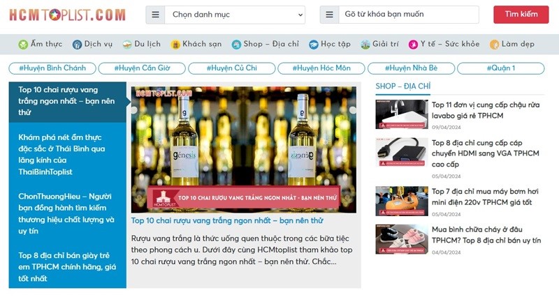 Trải nghiệm trang web review đa lĩnh vực ở TP. Hồ Chí Minh cùng HCMtoplist