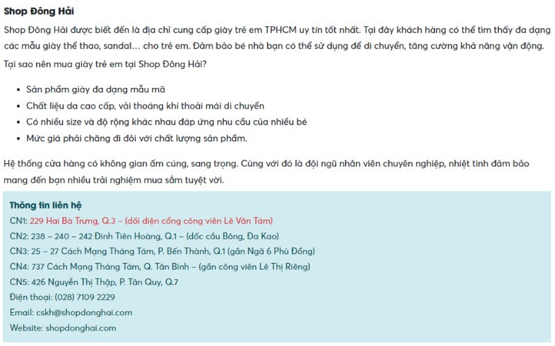 Mọi thông tin liên hệ từ địa chỉ, số điện thoại, website, fanpage và thời gian hoạt động đều có đầy đủ. Người biên tập sẽ tìm kiếm mọi phương thức liên hệ và tích hợp trong bài của mình. Người dùng có thể dễ dàng tham khảo thông tin và tìm đến trải nghiệm nhanh chóng hơn.